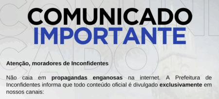A Prefeitura de Inconfidentes reforça a importância de estar atento a informações falsas que circulam…